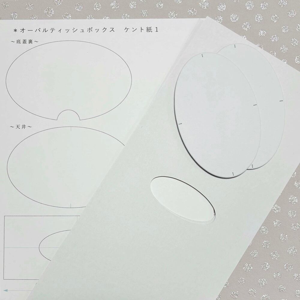 ご受講者様専用 オーバルティッシュボックスの制作に必要な 台紙のみをご購入いただけます。 2㎜カートン・1㎜カートン・印字済ケント紙